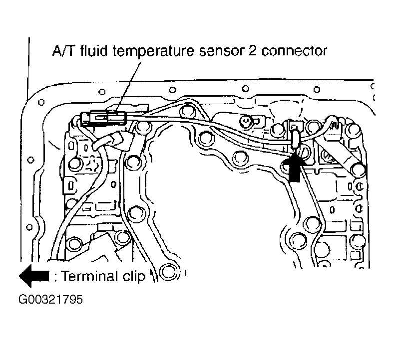 - Connect transmission fluid temperature sensor No. 2 connector. See Figure.