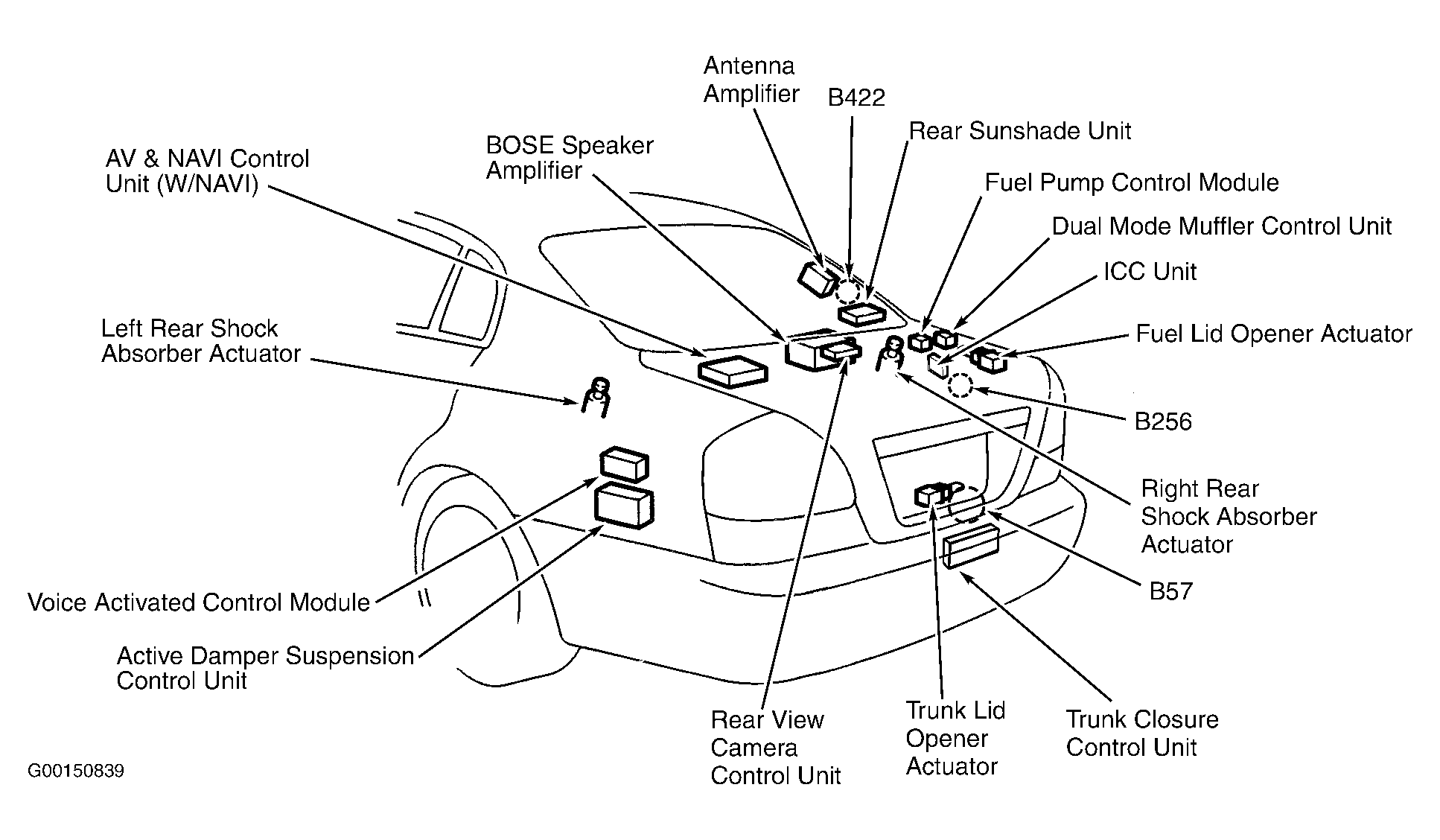 | BOSE Speaker Amplifier | At center front of trunk. See Figure . |