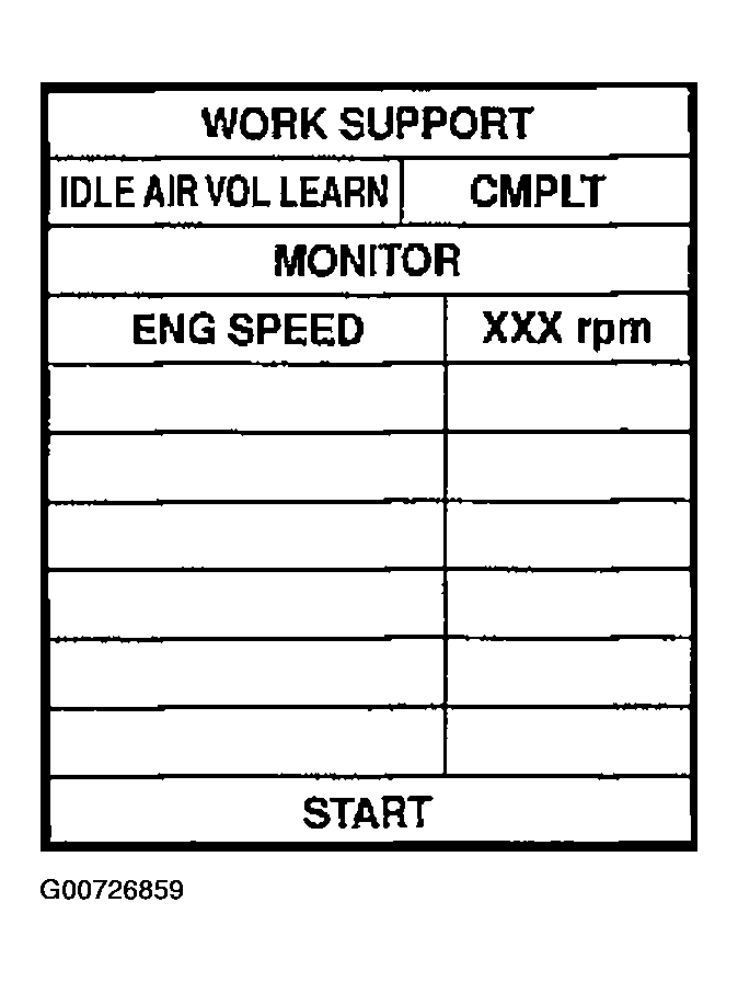 - Select IDLE AIR VOL LEARN in WORK SUPPORT mode.