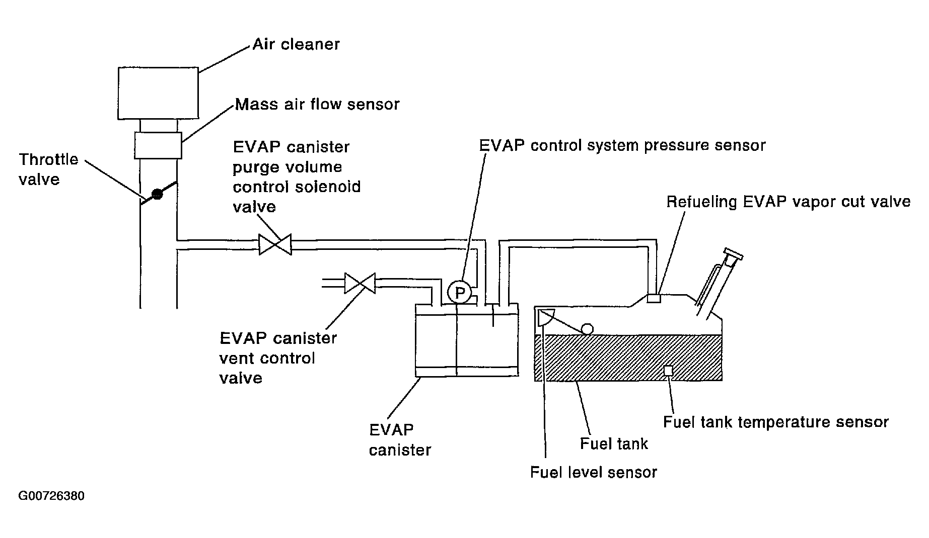 This diagnosis detects a very large leak (fuel filler cap fell off etc.) in EVAP system between the fuel tank and EVAP canister purge volume control solenoid valve.