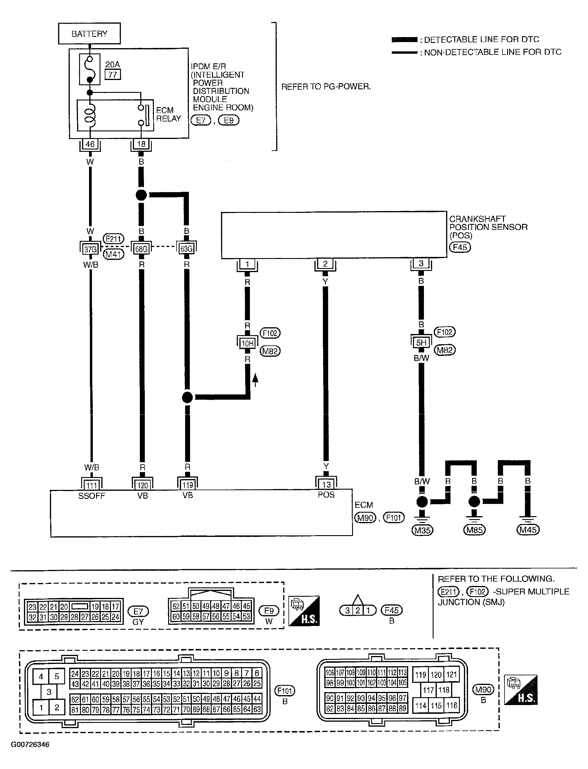 - Harness for open or short between crankshaft position sensor (POS) and IPDM E/R