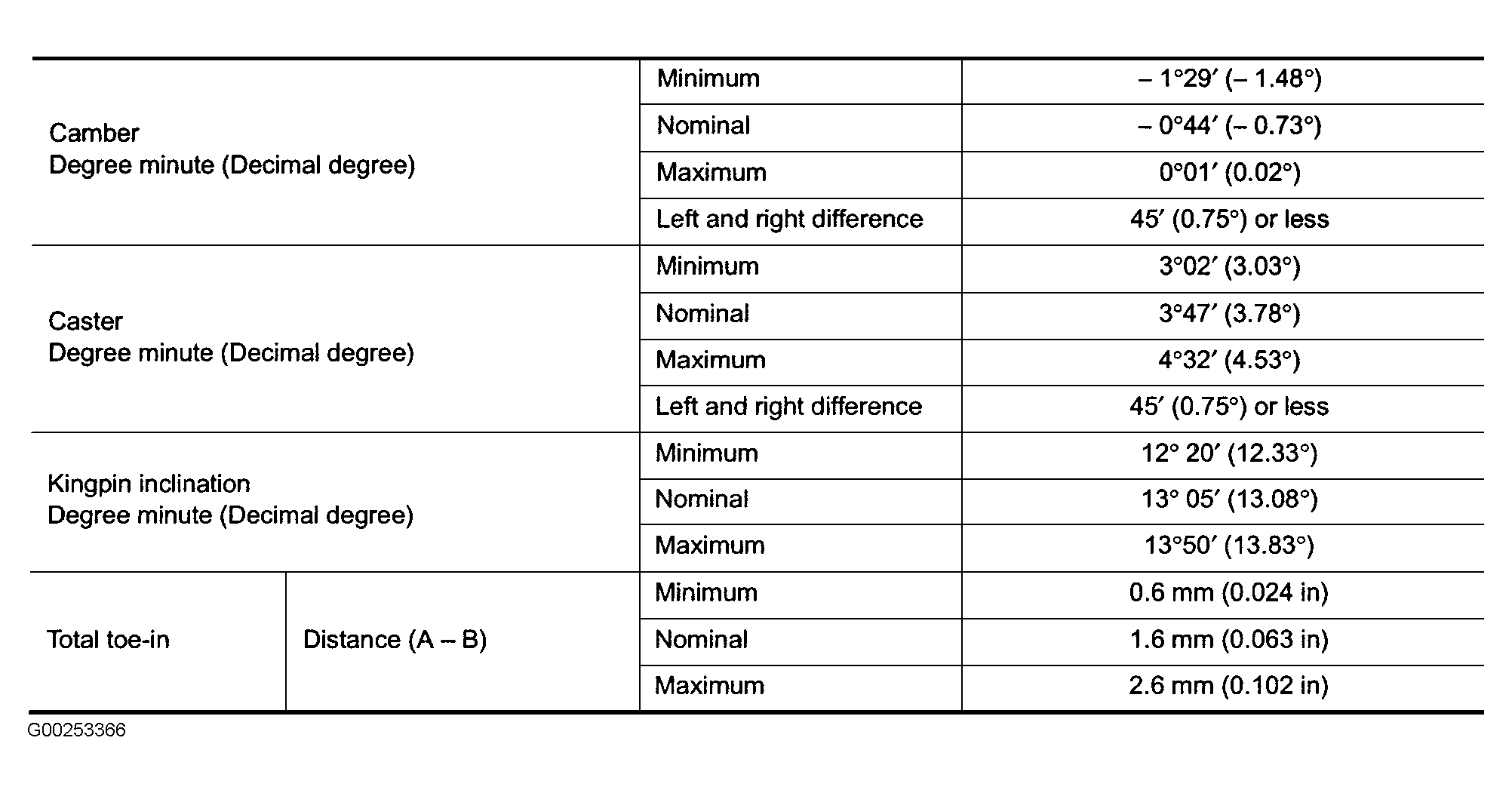 Fig 1: Front Wheel Alignment Specifications (FX35 & FX45)