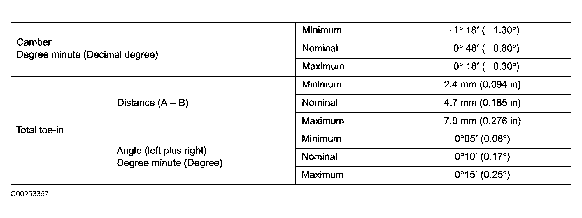 Use illustrations for front and rear wheel alignment specifications. See