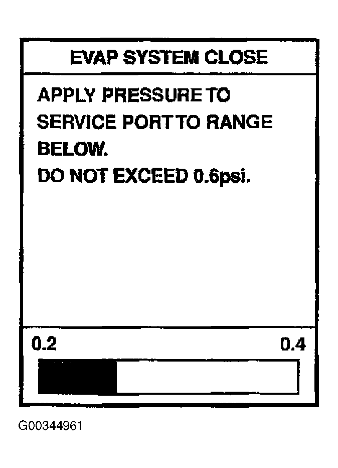 4. Touch START and apply pressure into the EVAP line until the pressure indicator reaches the middle of the bar graph. See Figure .