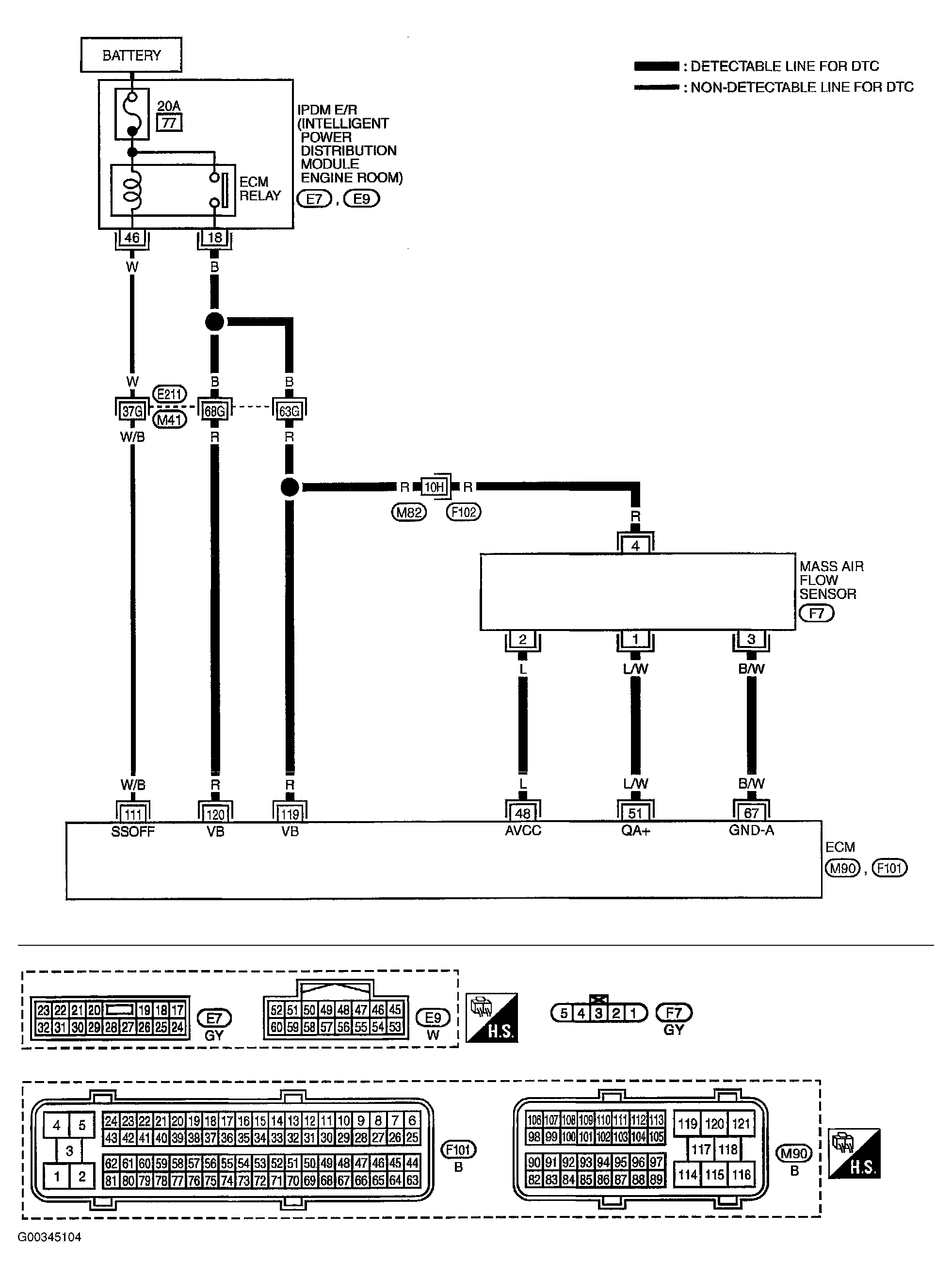 • Harness for open or short between IPDM E/R and mass air flow sensor
