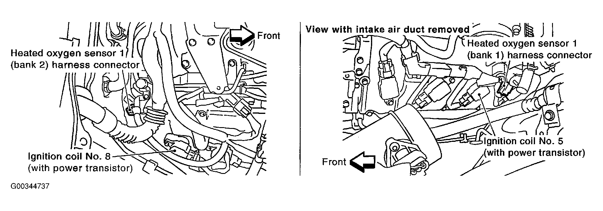 2. Disconnect corresponding heated oxygen sensor 1 (HO2S1) harness connector. See Figure .
