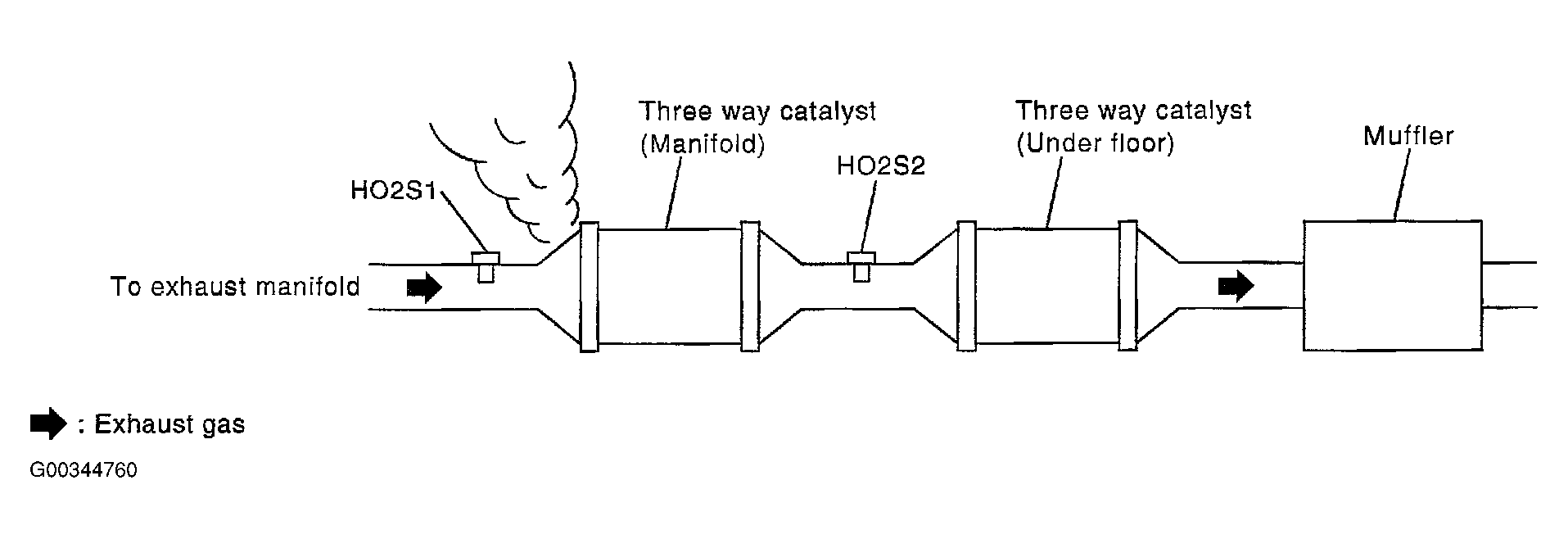 2. Listen for an exhaust gas leak before three way catalyst (manifold). See Figure .