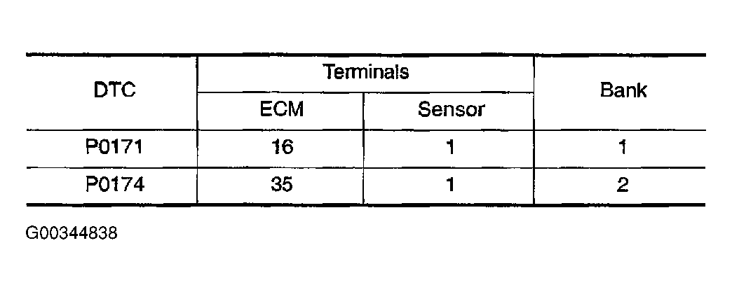 Fig 1: Identifying ECM & Sensor Terminals W/Bank Locations For DTC P0171 & P0174 Testing
