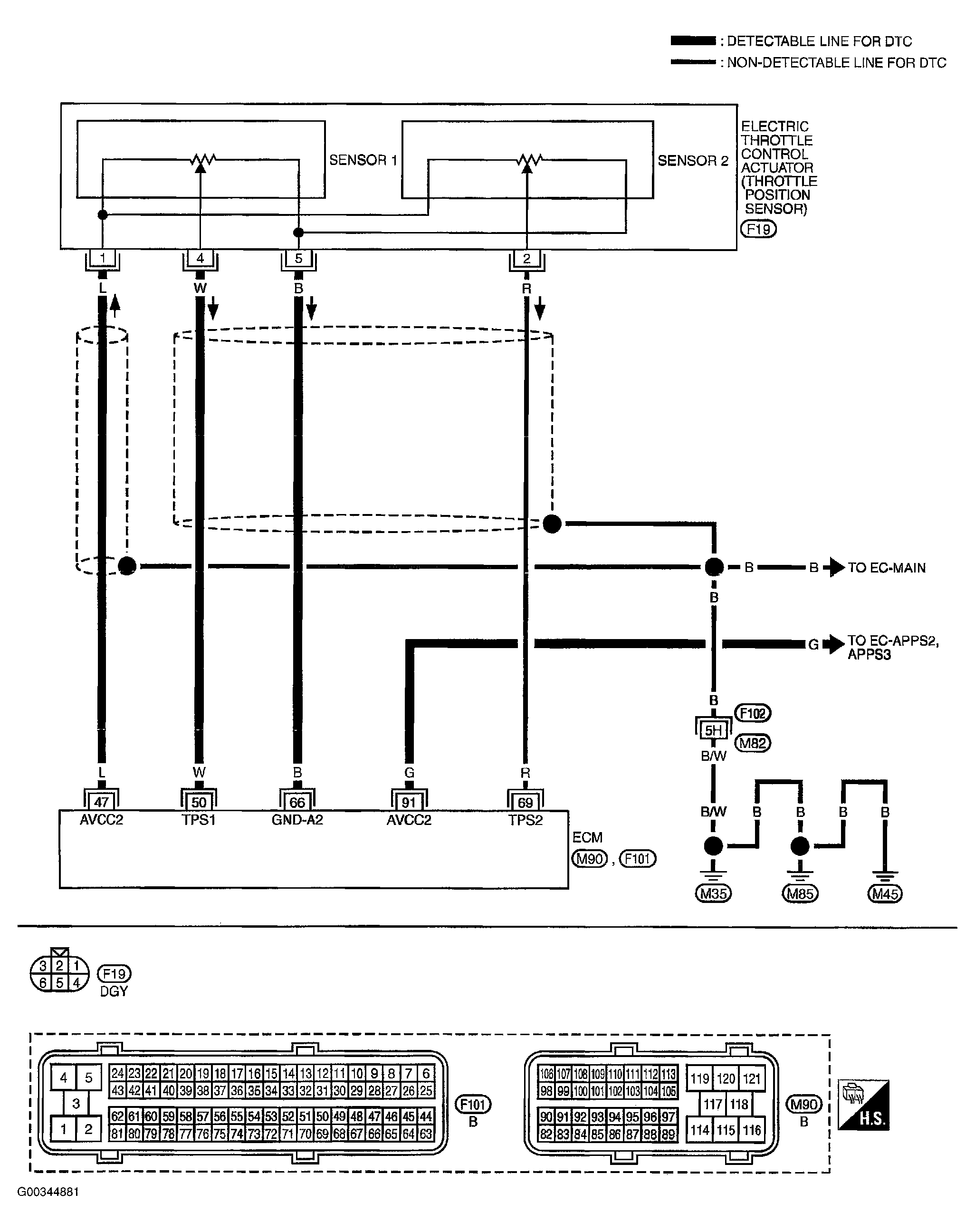 - Check harness continuity between ECM terminal 50 and electric throttle control actuator terminal 4.