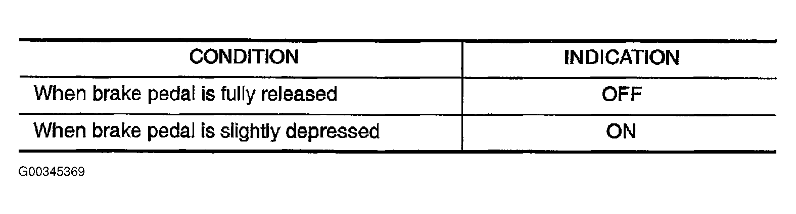 Check BRAKE SW2 indication in DATA MONITOR mode. See Figure and Figure .
