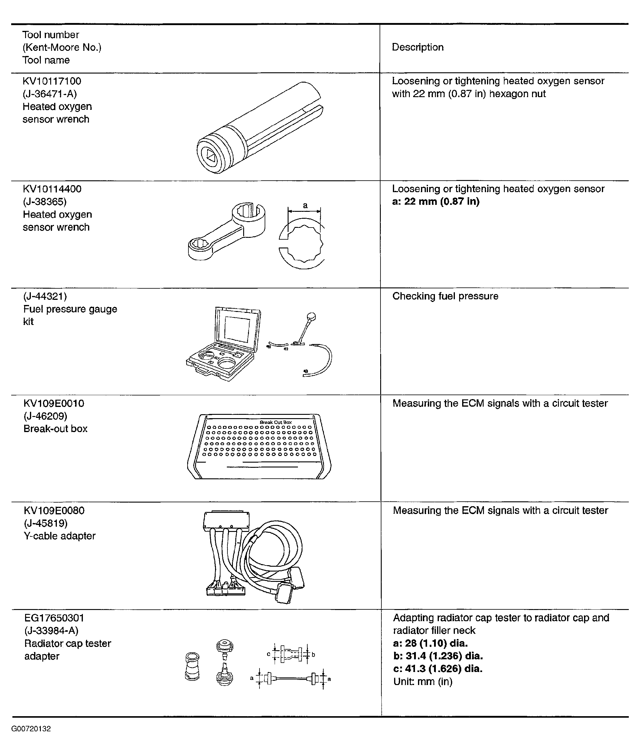 The actual shapes of Kent-Moore tools may differ from those of special service tools illustrated Fig 1.
