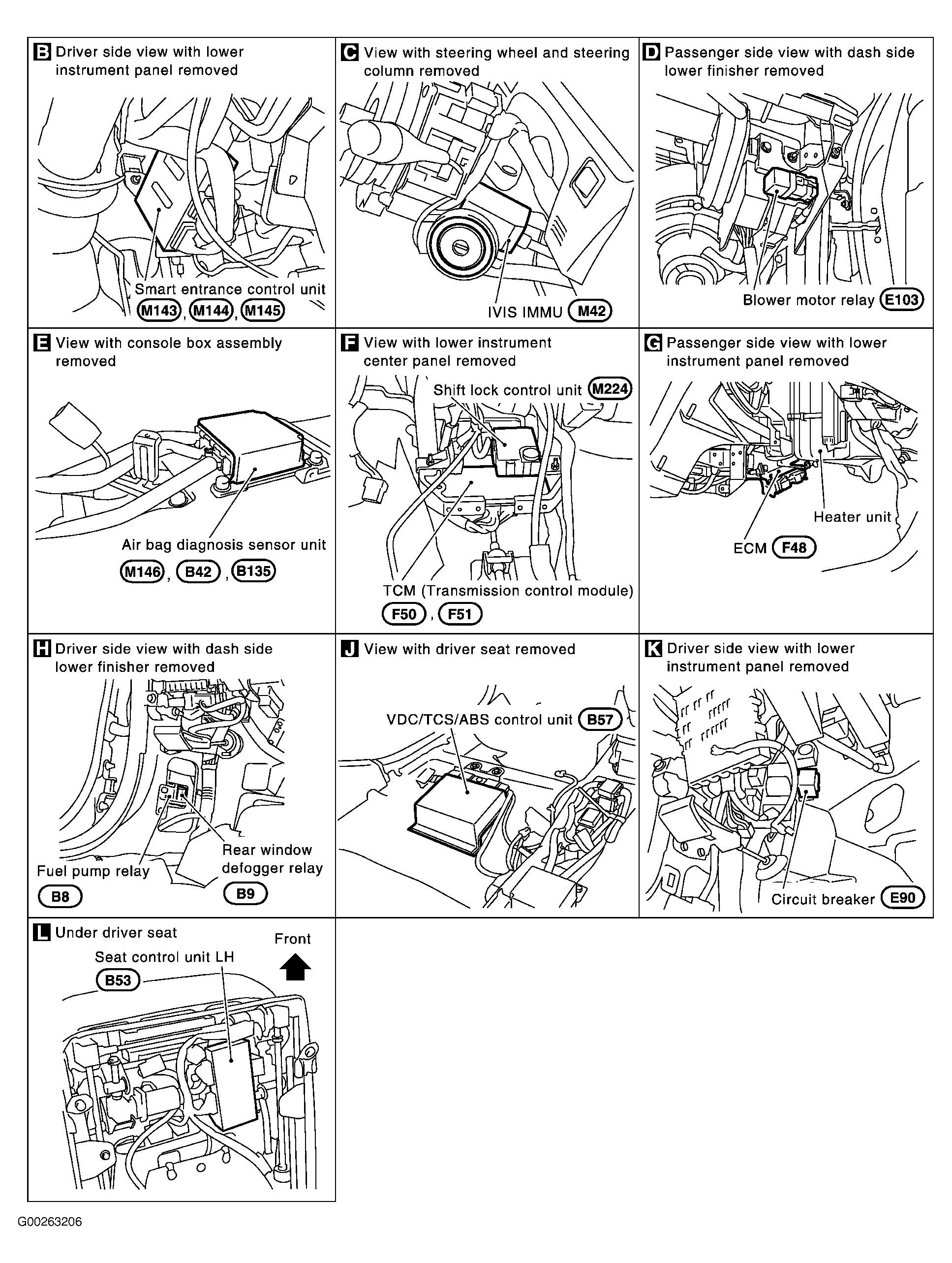 | VDC Relay Box (E165, E166) | At left rear of engine compartment, near ABS actuator & electrical unit. See Figure . |