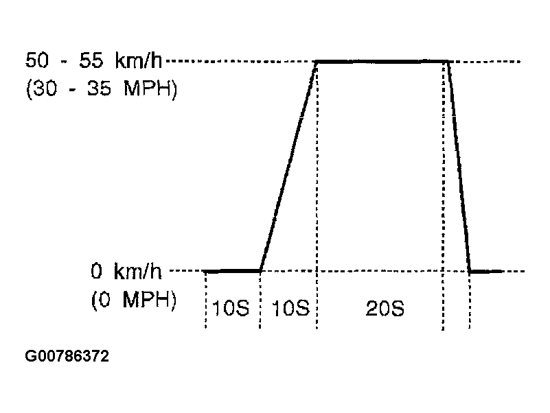 * 1: Depress the accelerator pedal until vehicle speed is 90 km/h (56 MPH), then release the accelerator pedal and keep it released for more than 10 seconds. Depress the accelerator pedal until vehicle speed is 90 km/h (56 MPH) again.