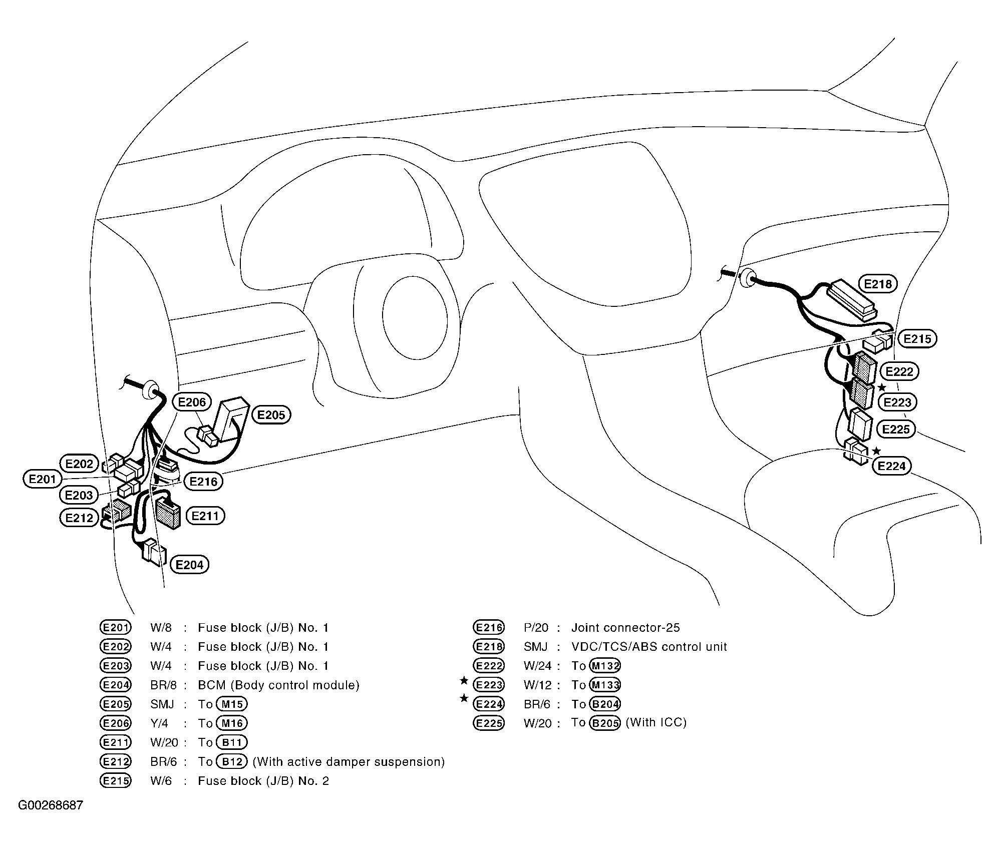 | Fuse Block (J/B) No. 1 | Behind left end of dash.Figure . |
