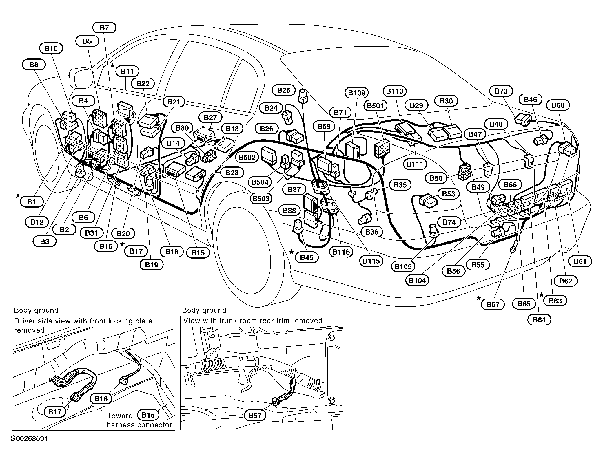 | Condenser (B228) | At base of right "C" pillar.Figure . |