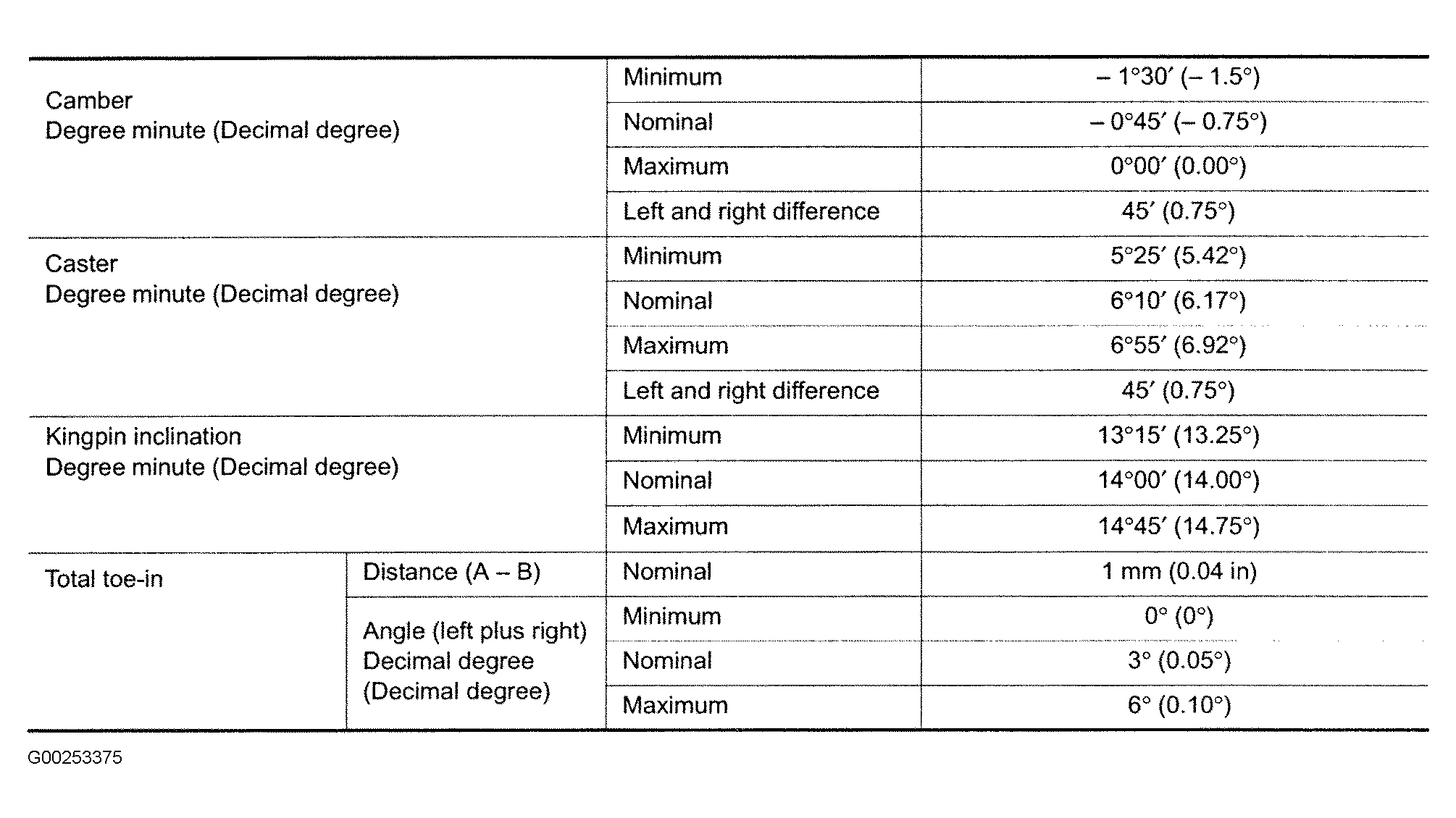 Home >> Infiniti >> 2004 >> Q45 >> Repair and Diagnosis >> Suspension >> Wheel Alignment >> Specifications & Procedures >> Specifications