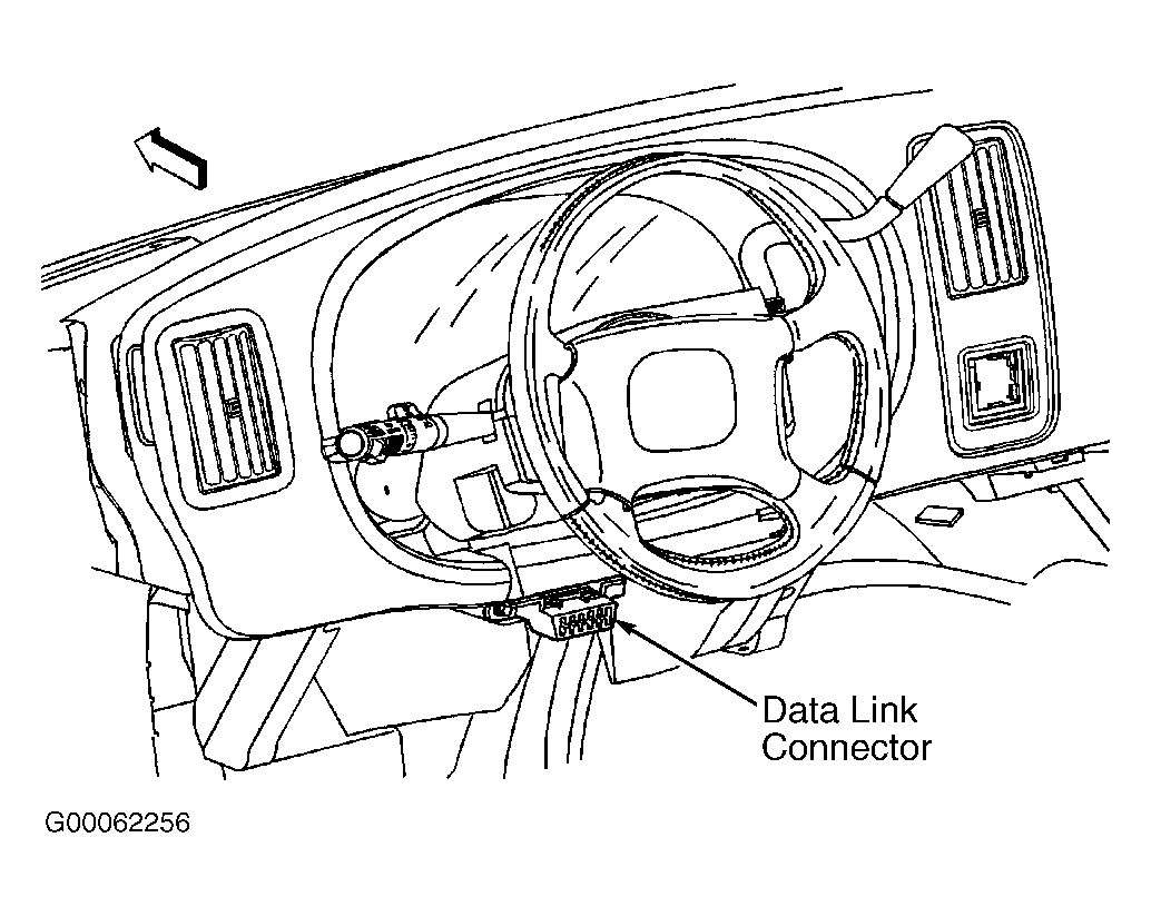 1. Turn ignition switch to OFF position. Connect scan tool to Data Link Connector (DLC), located below steering column. See Figure .