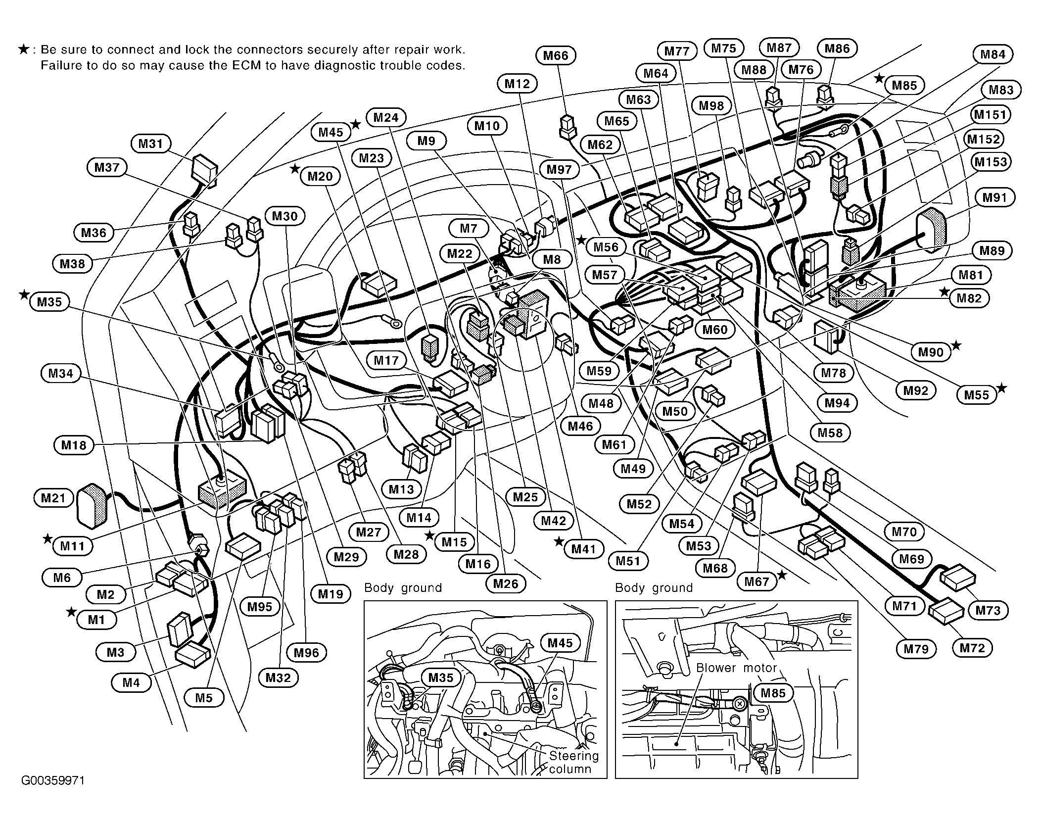 | Fuse Block (J/B) | Behind left kick panel. See Figure . |
