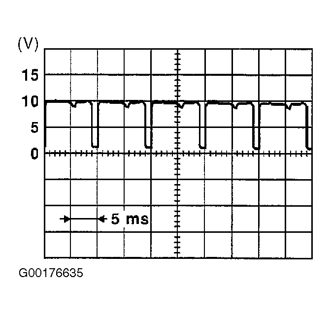 - BCM output terminal inspection. Connect combination switch connector. Turn ignition switch "ON". Check BCM connector (M19), terminal No. 40 (Red/Black) output 2 wire, harness side, voltage waveform. See Figure . If voltage waveform is OK, there is a combination switch malfunction, go to next step. If voltage waveform is not OK, replace BCM. See REMOVAL & INSTALLATION .