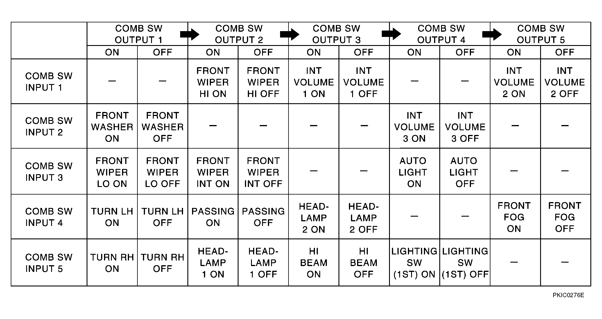 BCM reads operation status of combination switch using combinations shown in Fig 1 .
