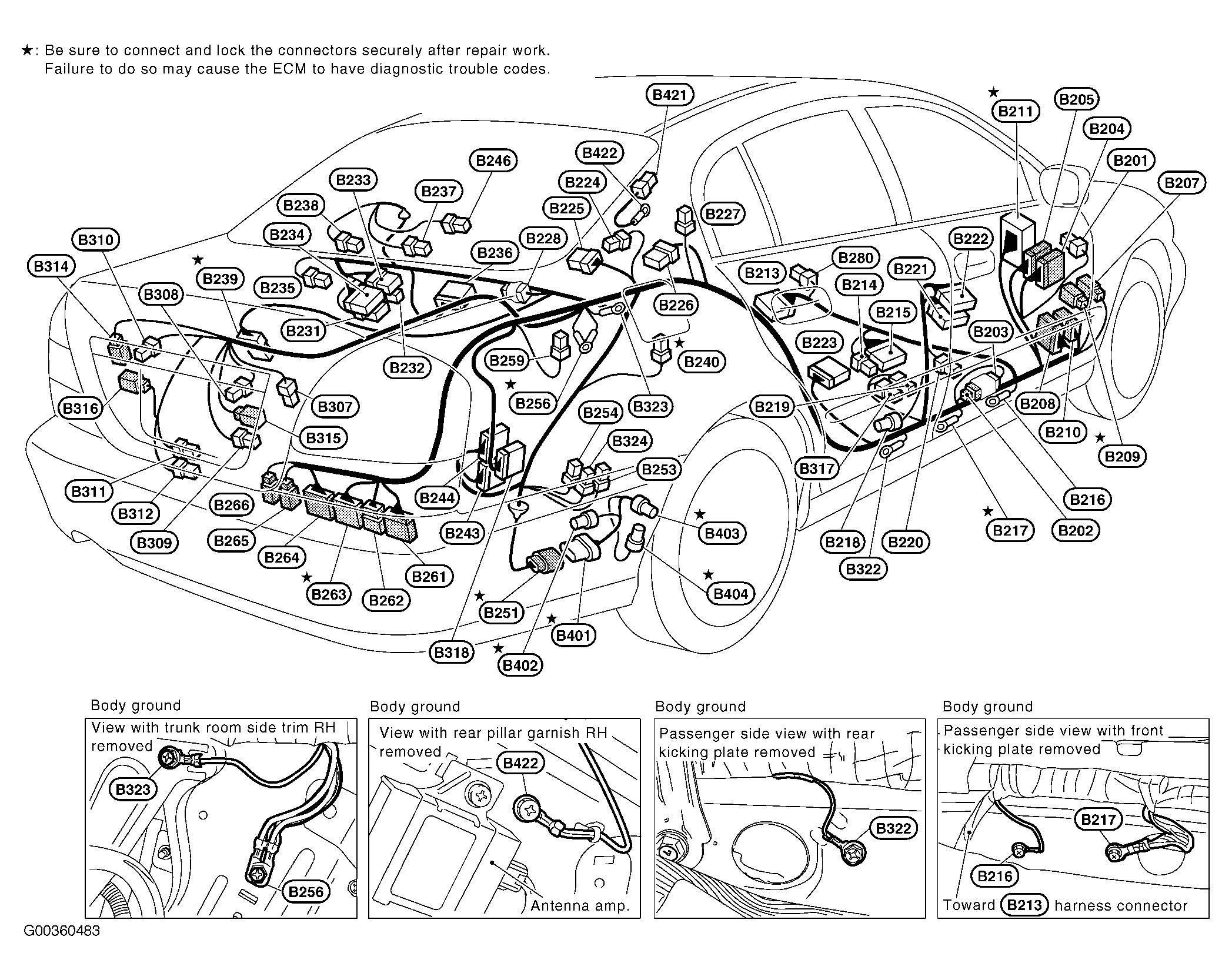 | Fuse Block (J/B) No. 2 | Behind right kick panel. See Figure . |