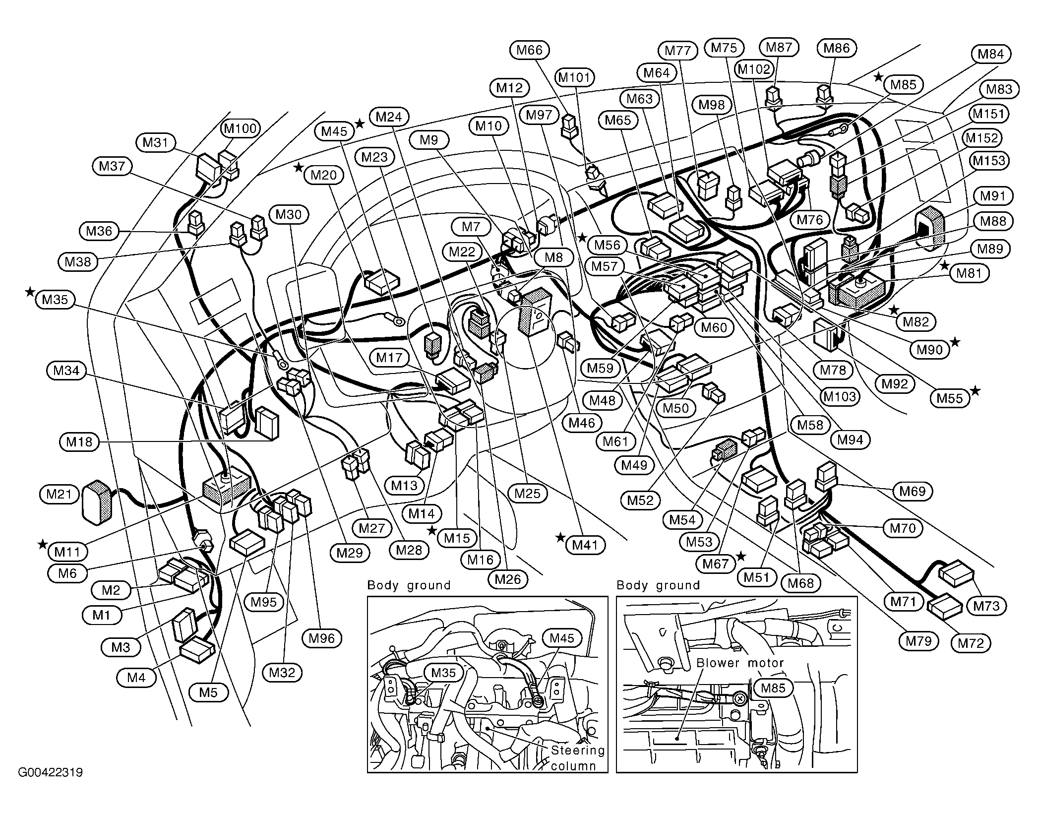 Remote Keyless Entry Receiver (M98) Behind right side of dash. See Figure.
