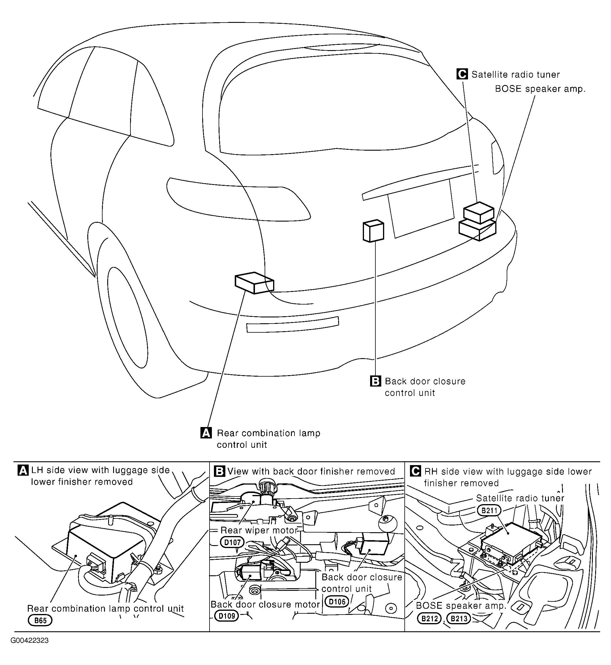 Rear Combination Lamp Control Unit Left rear of luggage compartment. See Figure.
