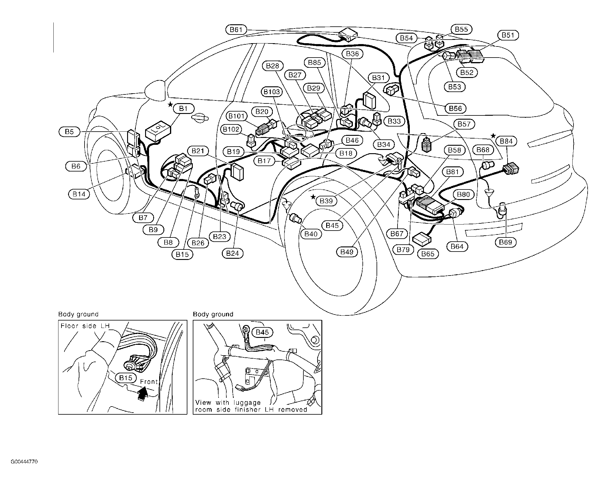 ABS Actuator & Electric Unit (Control Unit) Left rear of engine compartment. See Figure.