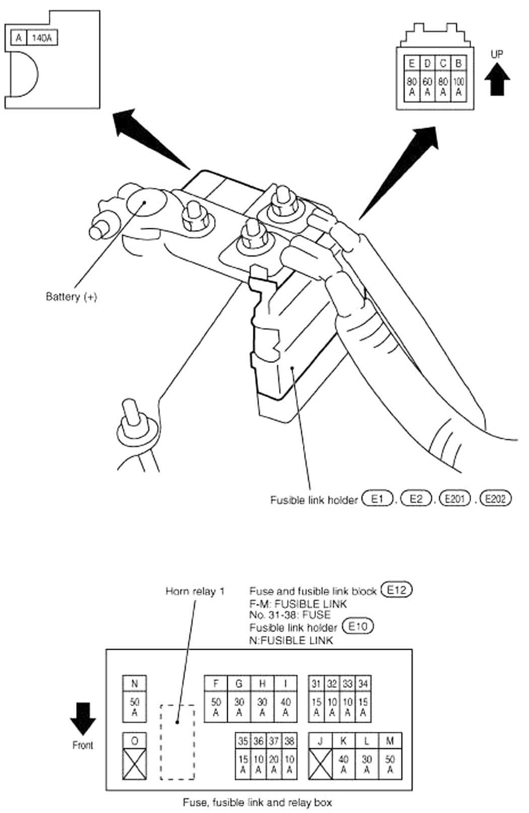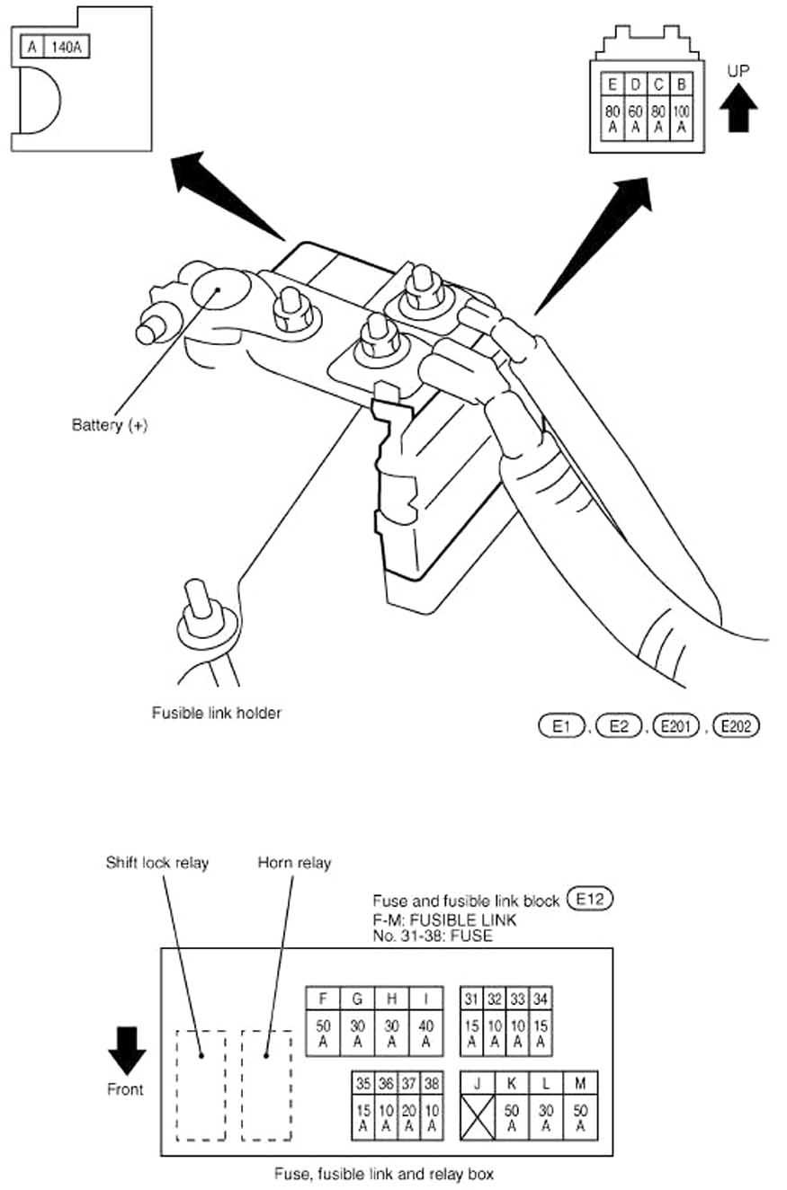 | Fusible Link Holder (Sedan) | Right rear of engine compartment. See Figure. |