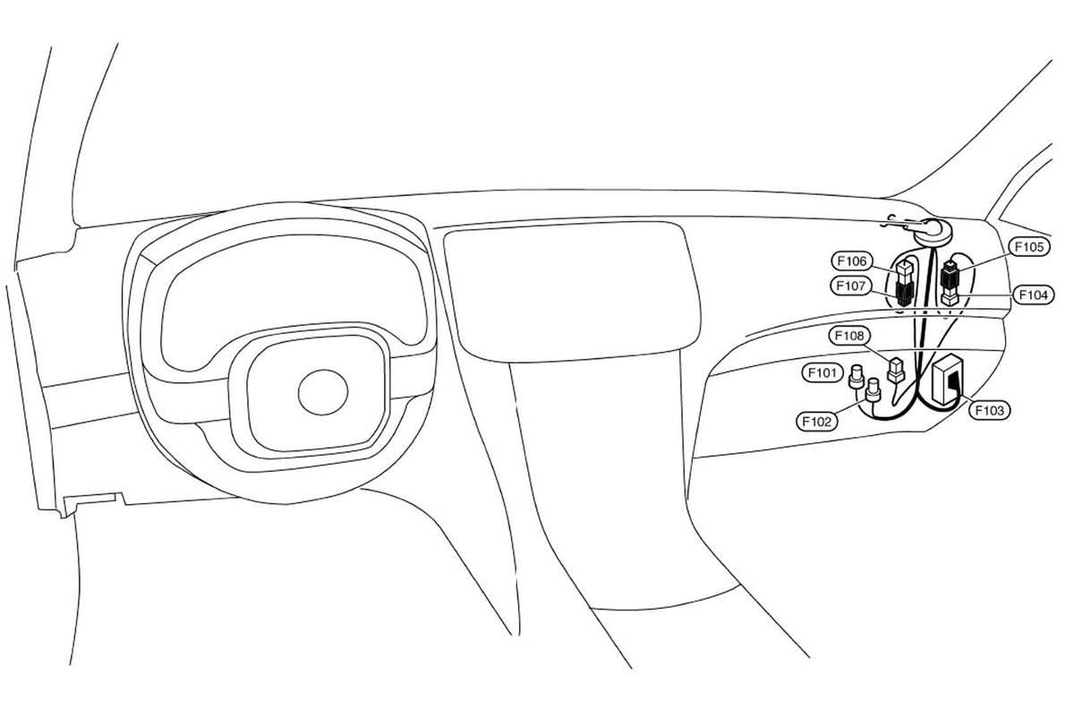 | AWD Control Unit (Sedan) (F108) | Behind right end of dash. See Figure. |