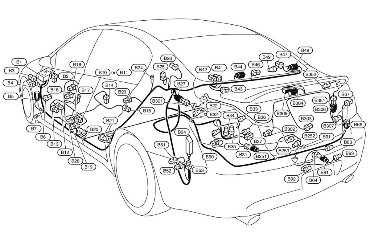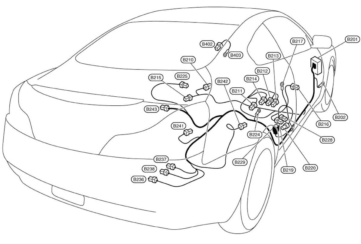 | Camera Control Unit (Sedan) (B241) | Right side of luggage compartment. See Figure. |