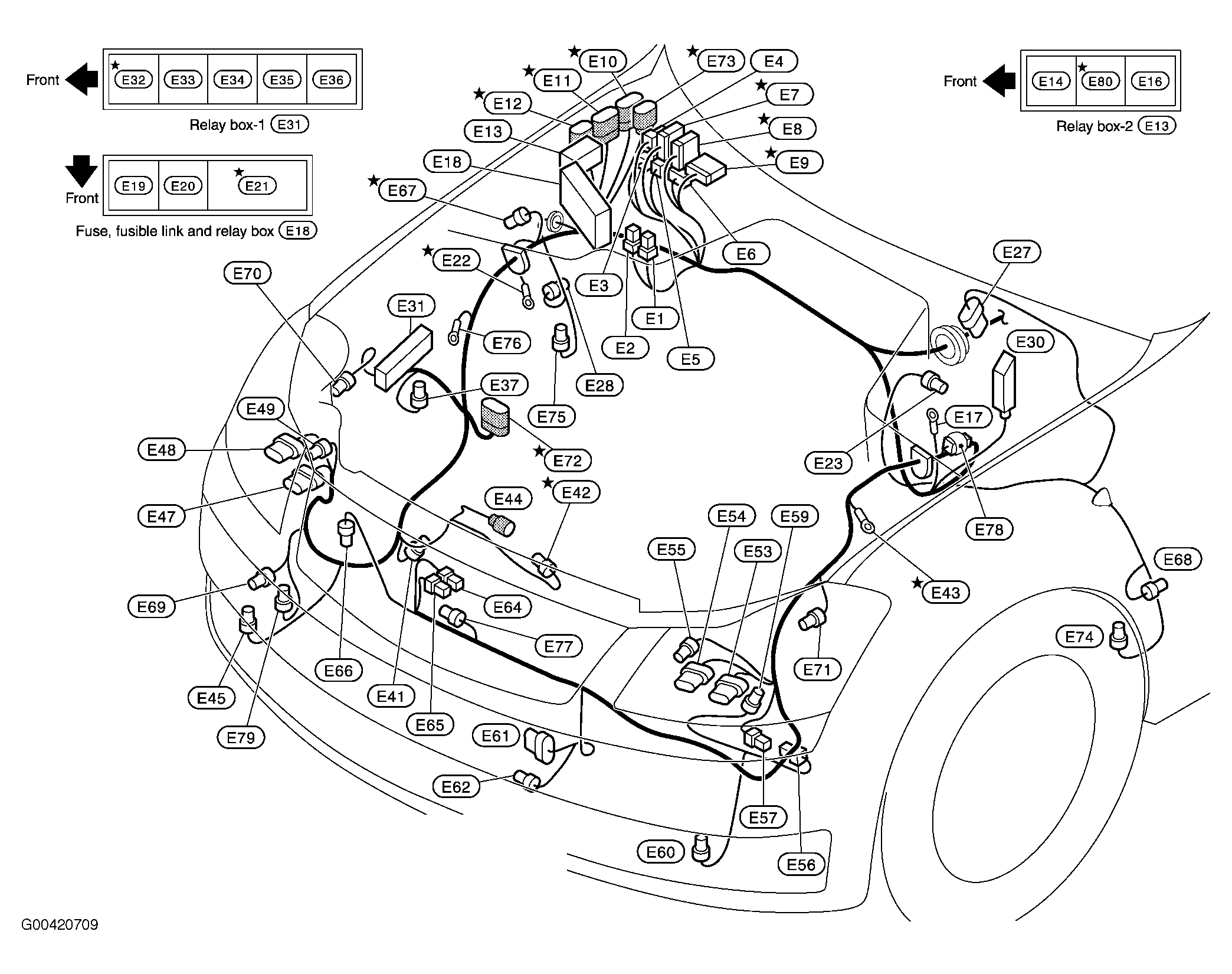 Hood Switch (E44) Front of engine compartment. See Figure.