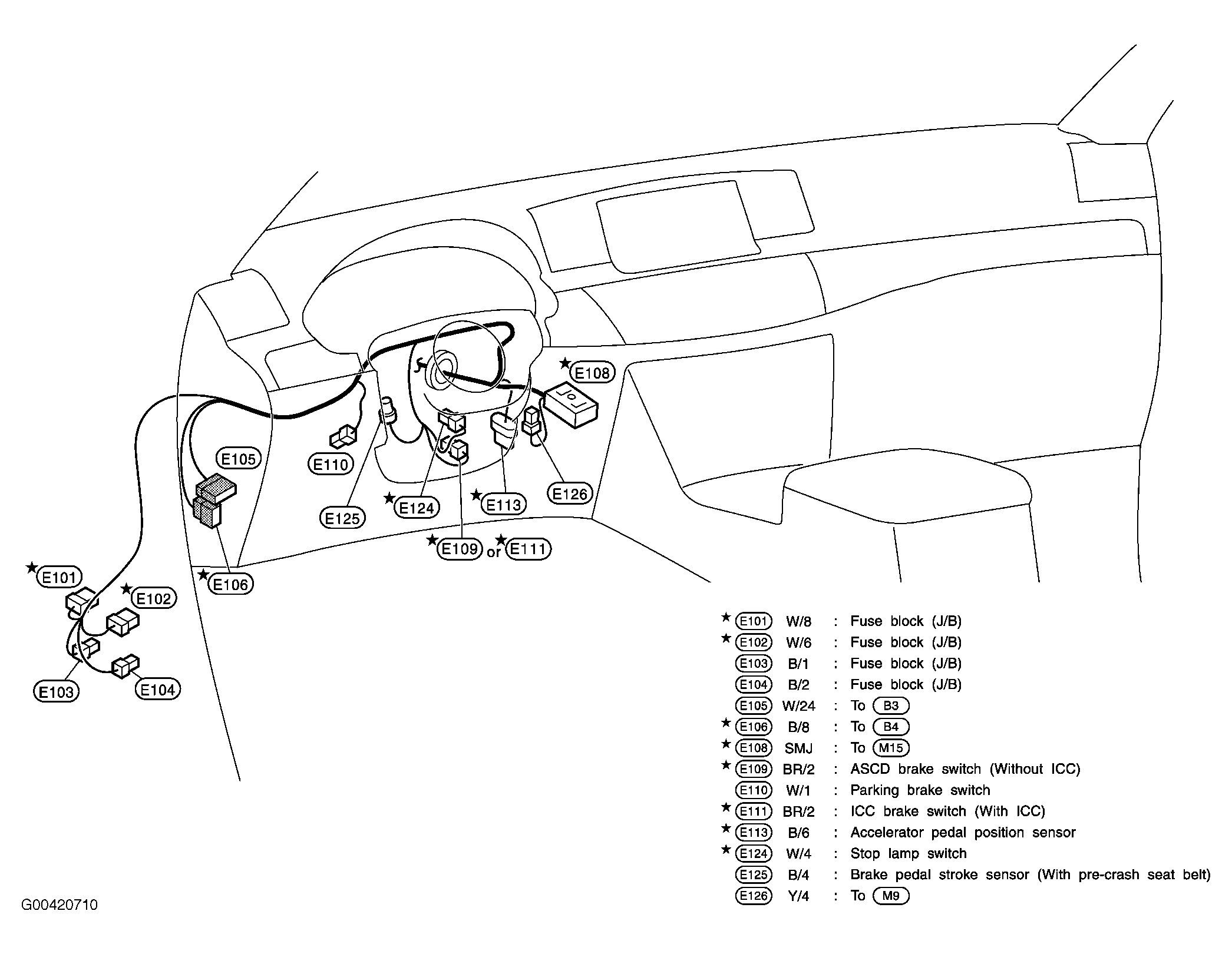 ASCD Brake Switch (W/O ICC) On brake pedal bracket. See Figure.