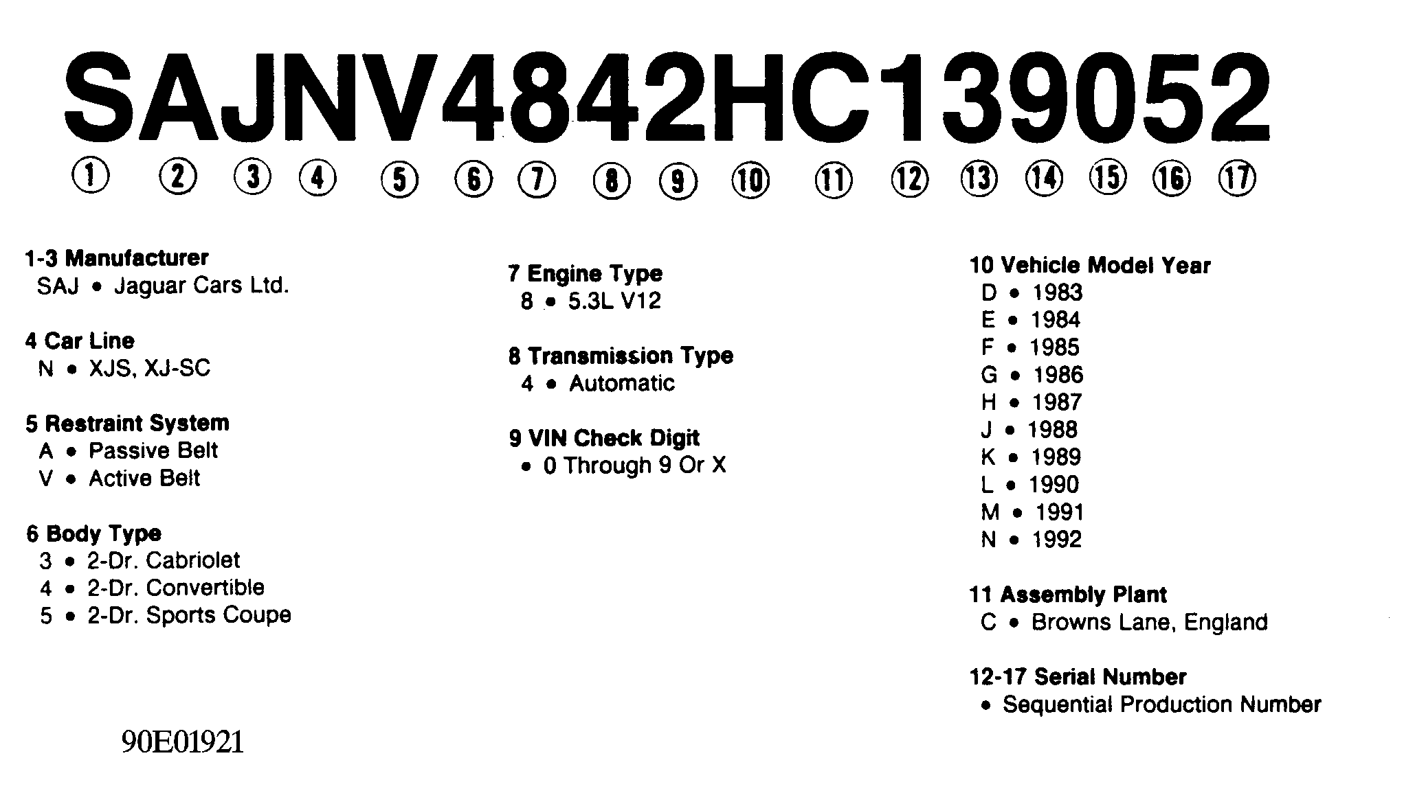 Numbers preceding the explanations in the legend below refer to the sequence of characters as listed on VIN identification label in Figure . The legend listed below will also be found inFigure .