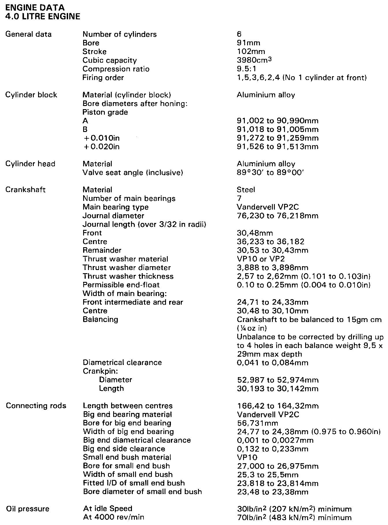 4.0L Engine Specifications