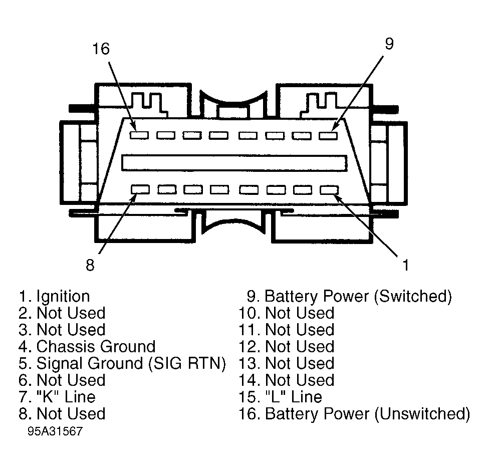 For DLC and PCM connector terminal identification, See Fig 1 and Fig 2 . DO NOT backprobe PCM when testing. Place tester probe into contact with terminal, from terminal side of wiring harness connectors in engine compartment. DO NOT puncture wire insulation. For female connectors, just touch terminal lightly with tester probe. DO NOT insert probe into terminal.