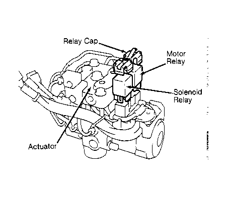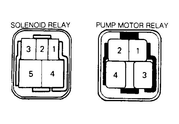 - Remove pump motor relay from actuator. See SOLENOID & PUMP MOTOR RELAYS under REMOVAL & INSTALLATION. See Figure. Using a DVOM, check continuity of pump motor relay. Ensure continuity is present between terminals No. 1 and 2. See Fig 1.