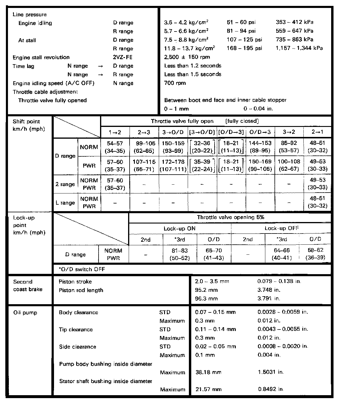 A540E 4-spd A/T, Line Pressure/Shift Point: