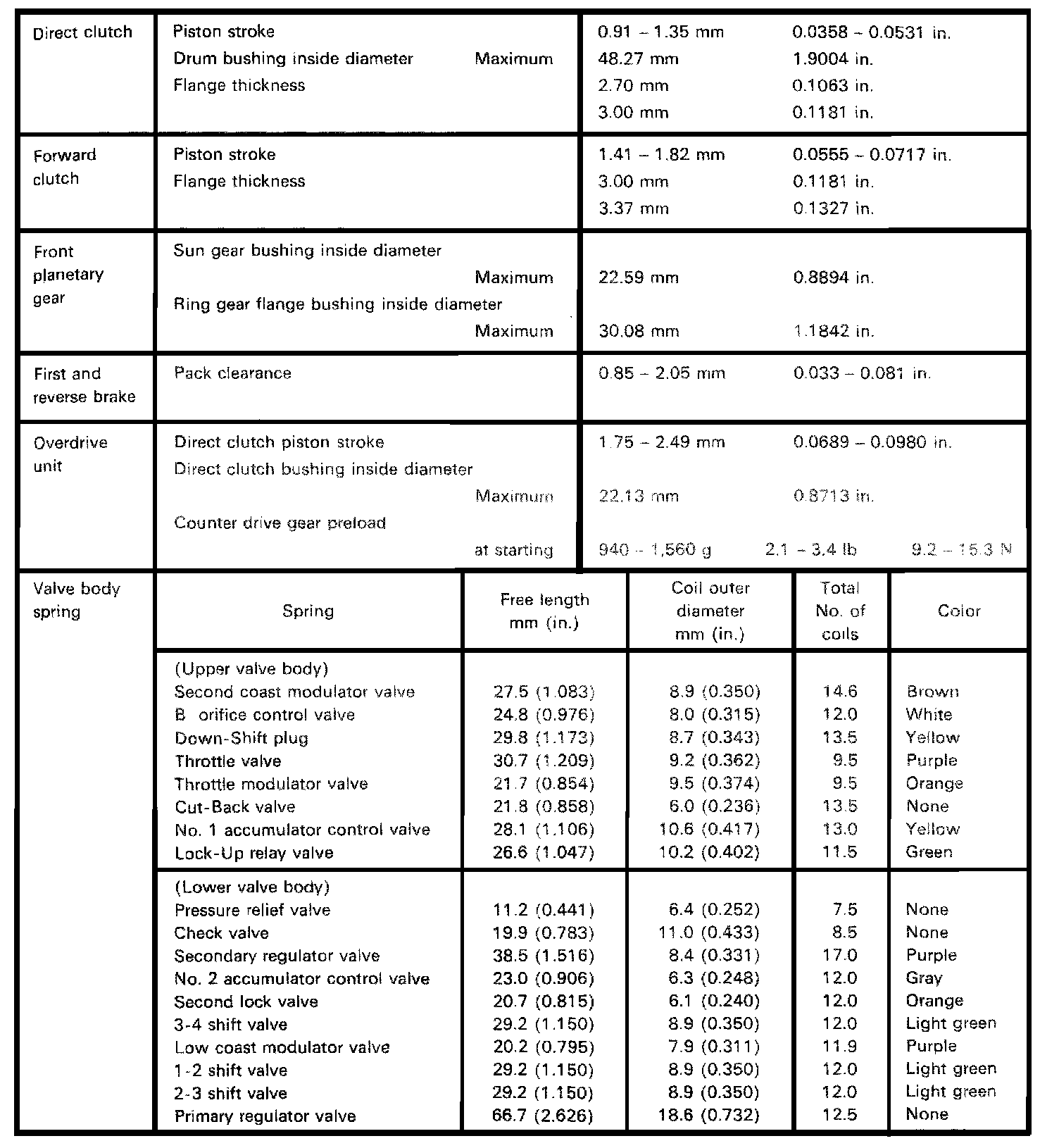 A540E 4-spd A/T, Clutch Clearances/Valve Body: