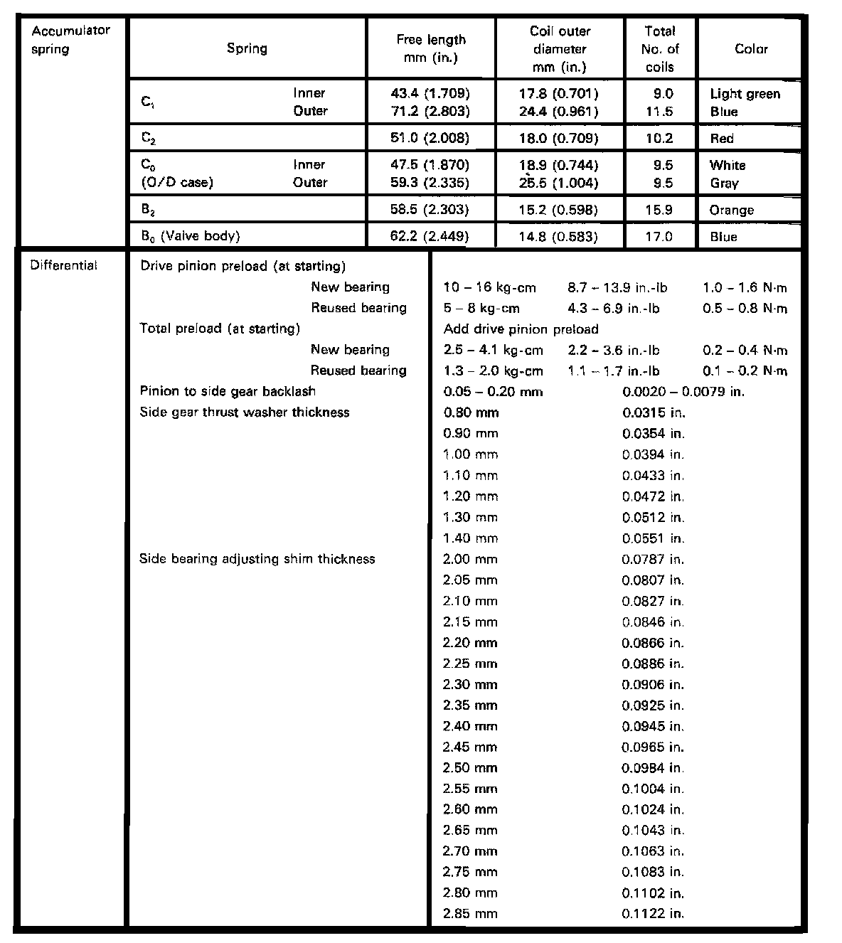 A540E 4-spd A/T, Accumulator Spring/ Differential: