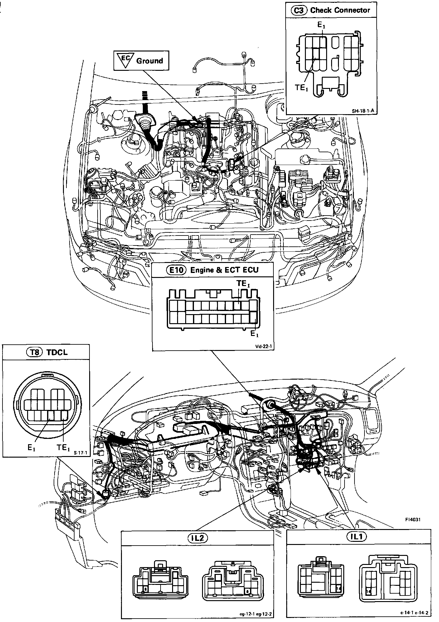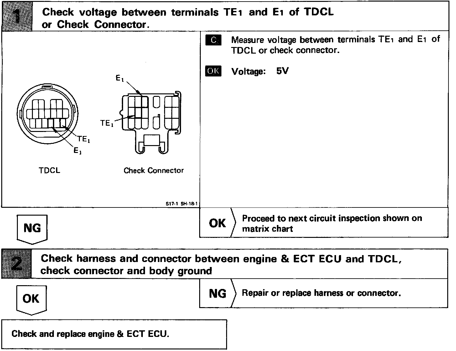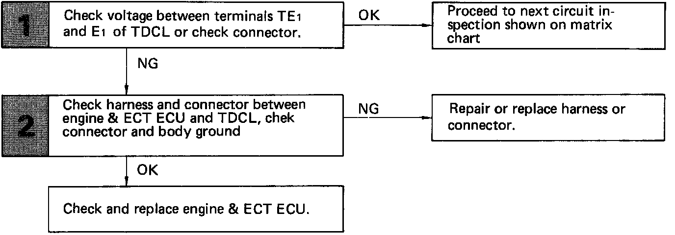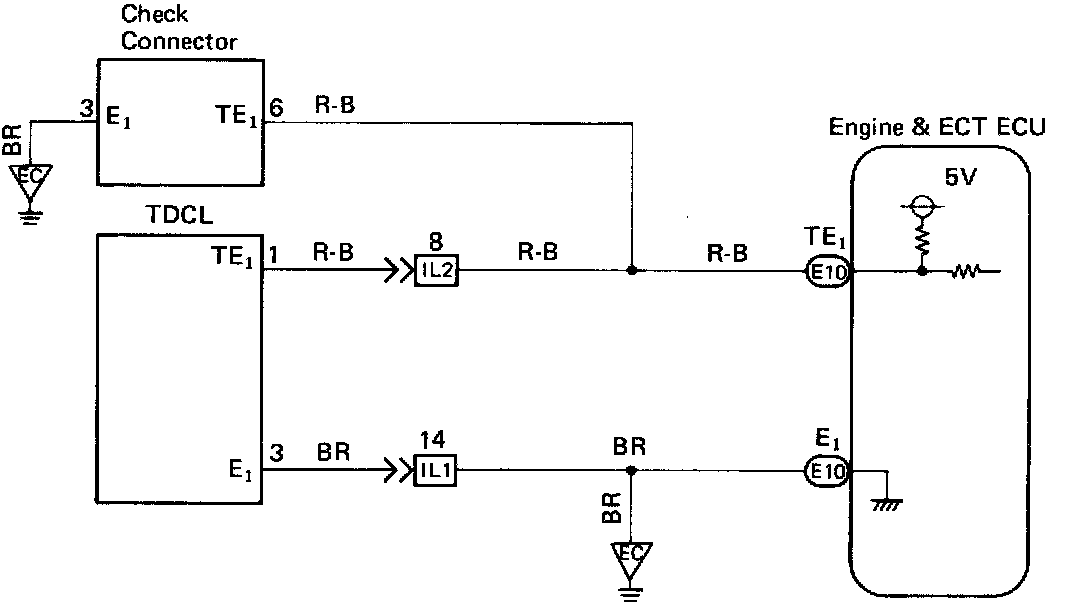 The ECU displays diagnostic codes using the O/D OFF indicator light when terminals TE1 and E1 of the TDCL or check connector are connected.