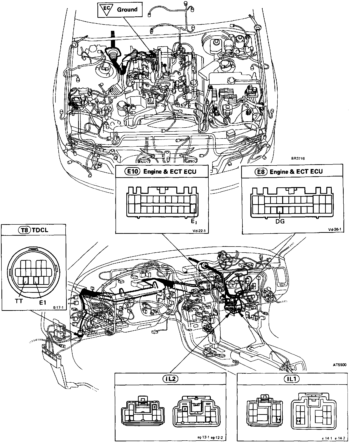 Checks of ECU input and output signals related to the throttle position sensor, brakes, shift position and other circuits can be performed by measuring the voltages at terminal TT of the check connector.