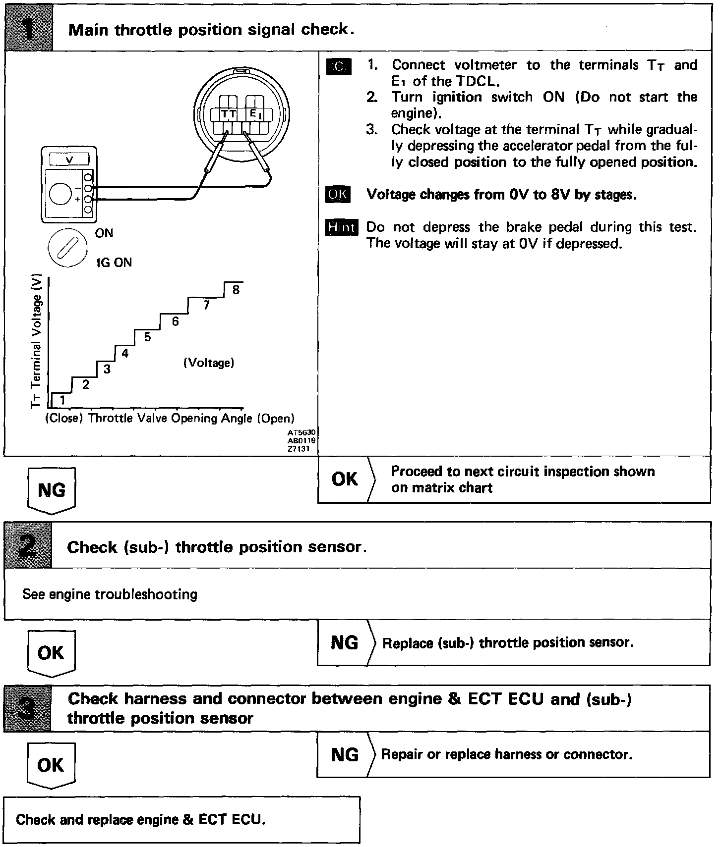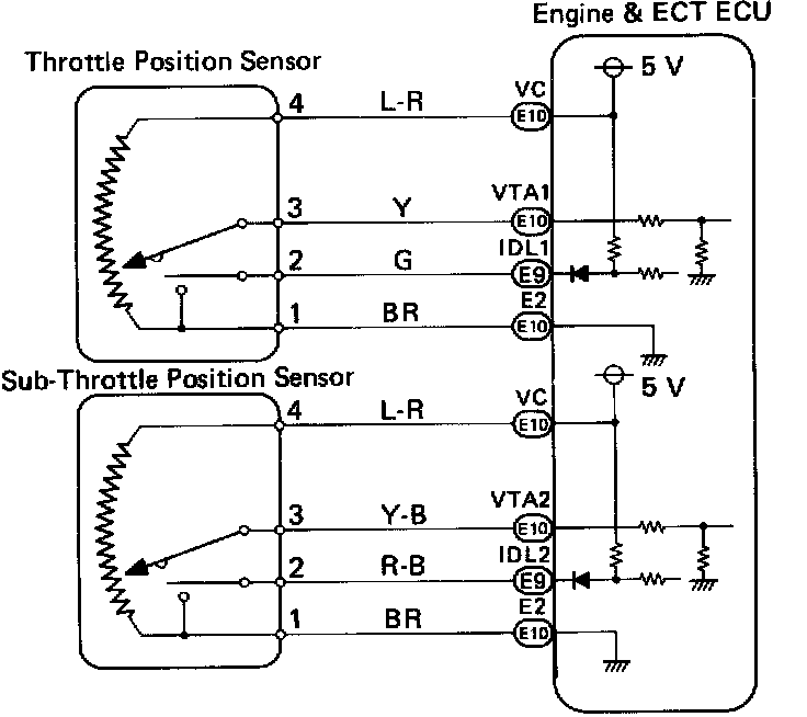 Home >> Lexus >> 1990 >> LS 400 V8-4.0L (1UZ-FE) >> Repair and Diagnosis >> Powertrain Management >> Computers and Control Systems >> Throttle Position Sensor >> Testing and Inspection >> Sub Throttle Position Sensor Signal