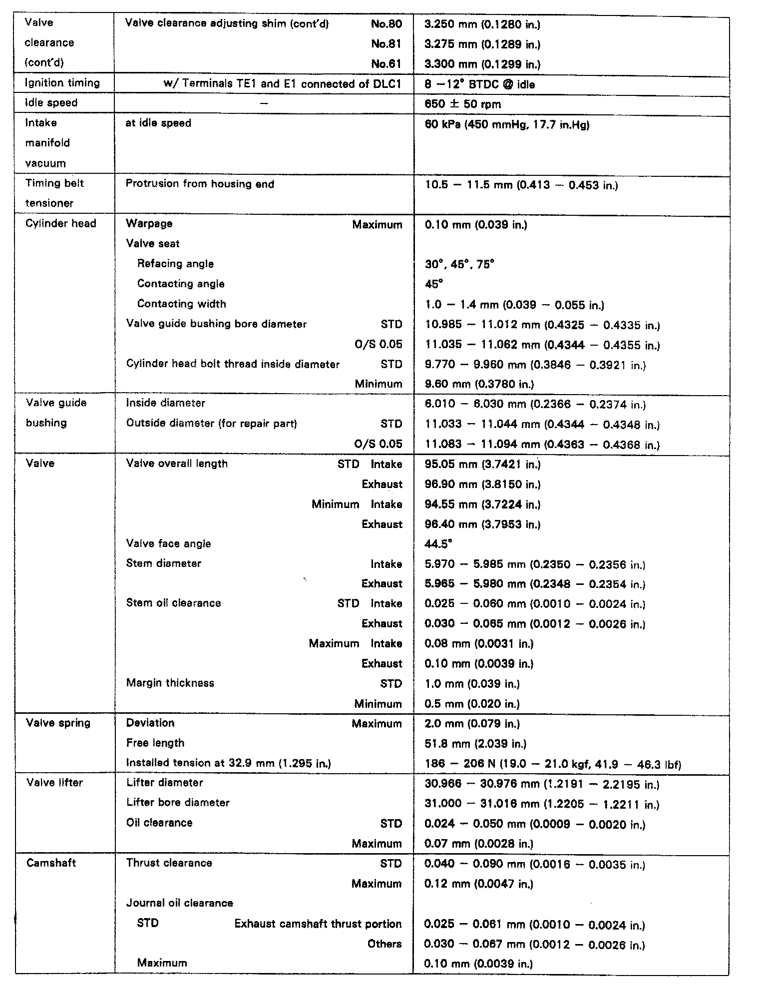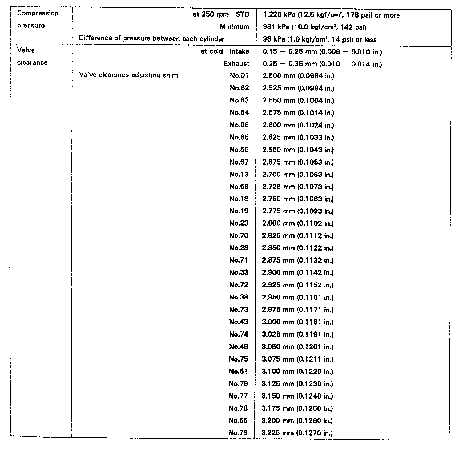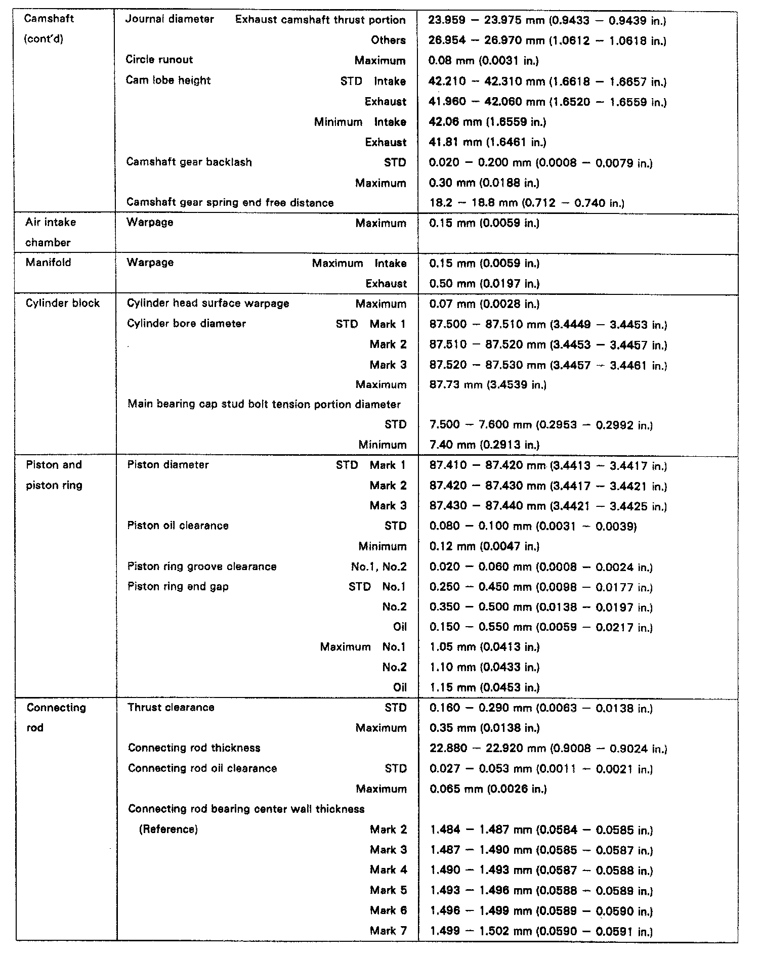 ENGINE SPECIFICATIONS