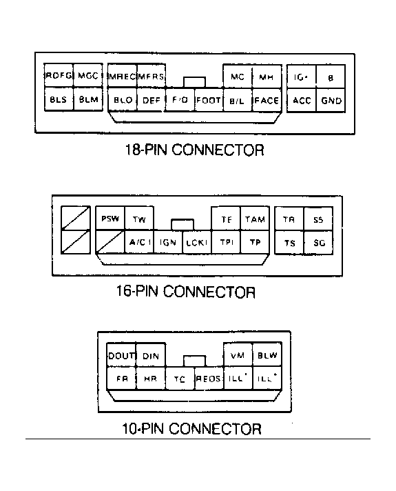 - Apply battery voltage to terminal IG of A/C control assembly 18-pin harness connector, and ground terminal GND. See Figure. Connect a 1.4-watt test light between terminal RDFG of A/C control assembly 18-pin connector and battery.