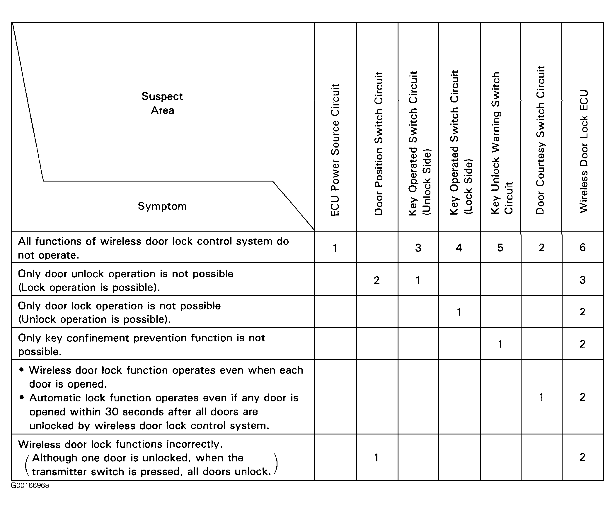 The key operated switch is built into the door key cylinder. When the key is turned to the lock side, the lock terminal of the switch is grounded, and when the key is turned to the unlock side the unlock terminal is grounded. Furthermore, the key operated switch circuit has terminal +B connected inside the theft deterrent ECU, when nether the lock or unlock terminal of the key operated switch are grounded, battery voltage is applied to the key operated switch circuit of the wireless door lock ECU.