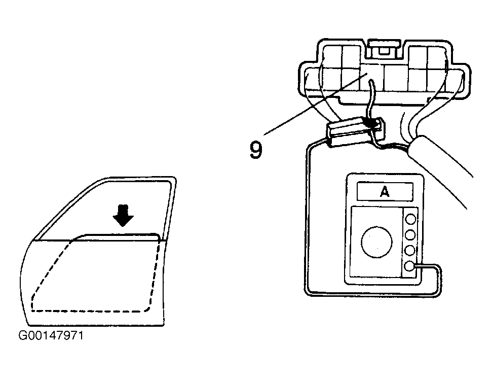 - Check that the current increases approximately 14.5 amperes or more when the window stops going down.