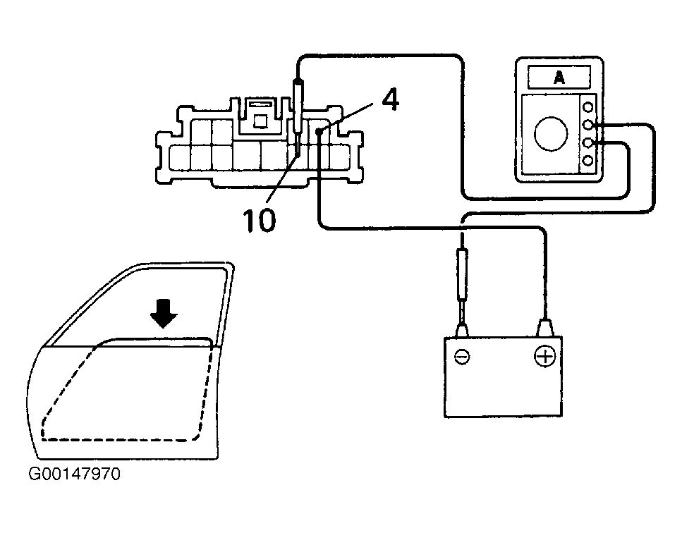 - Check that the current increases approximately 14.5 amperes or more when the window stops going down.