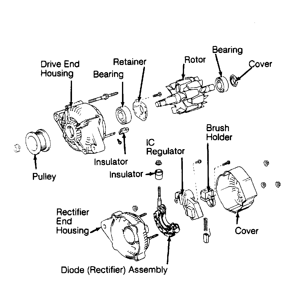 Fig 2: Exploded View of Nippondenso Alternator (LS400)