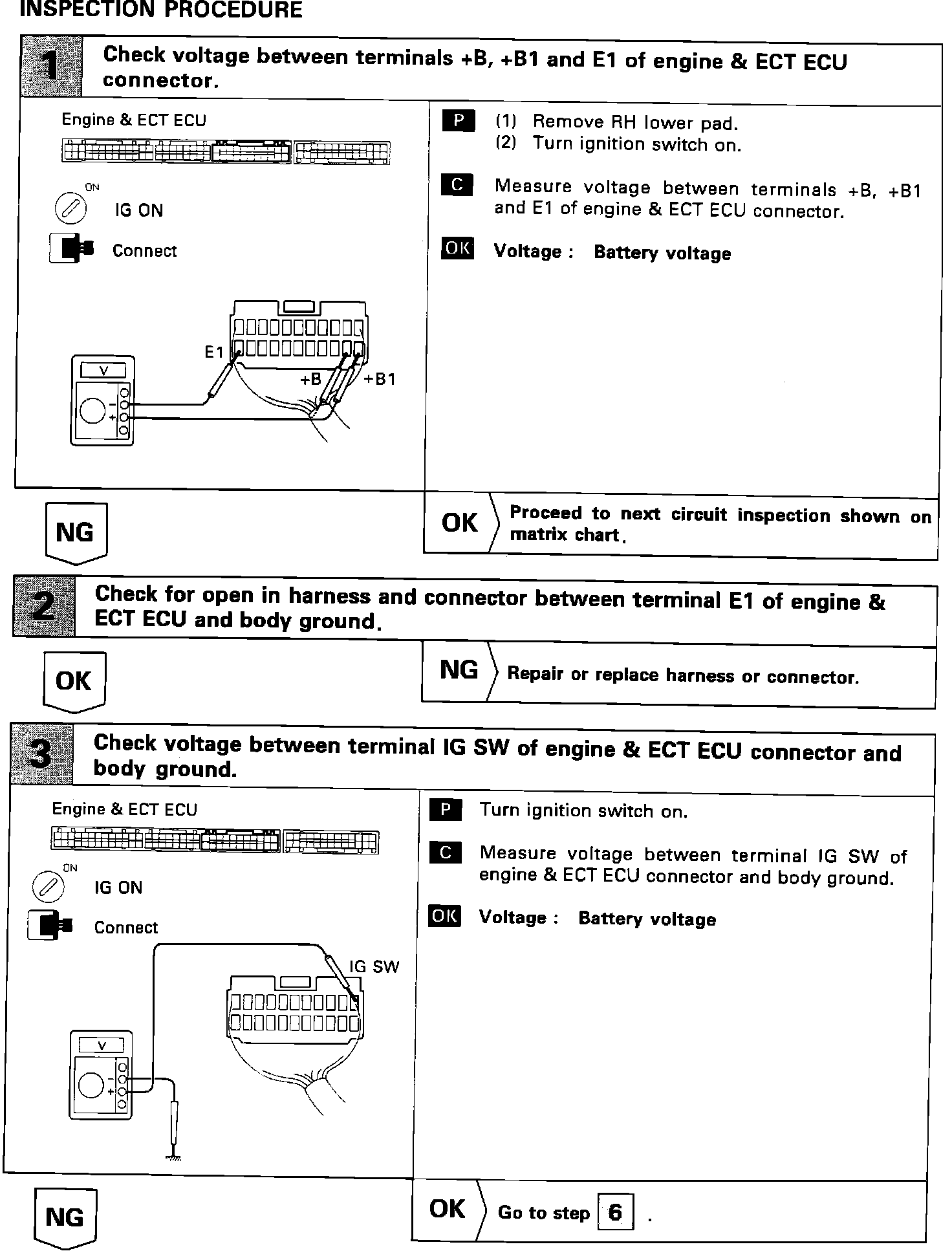 Home >> Lexus >> 1991 >> LS 400 V8-4.0L (1UZ-FE) >> Repair and Diagnosis >> Powertrain Management >> Computers and Control Systems >> Engine Control Module >> Testing and Inspection >> Component Tests and General Diagnostics >> ECM Power Source Circuit